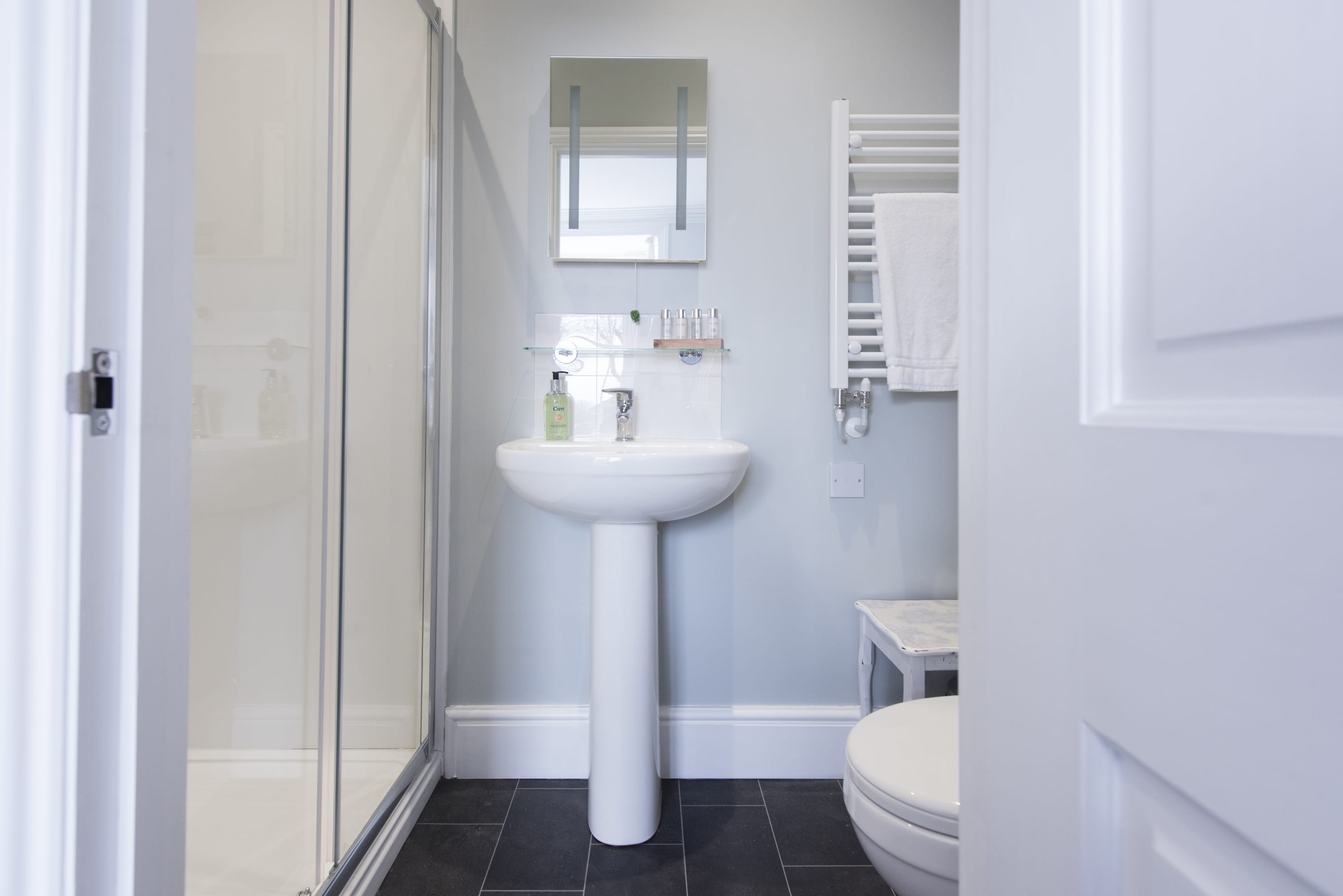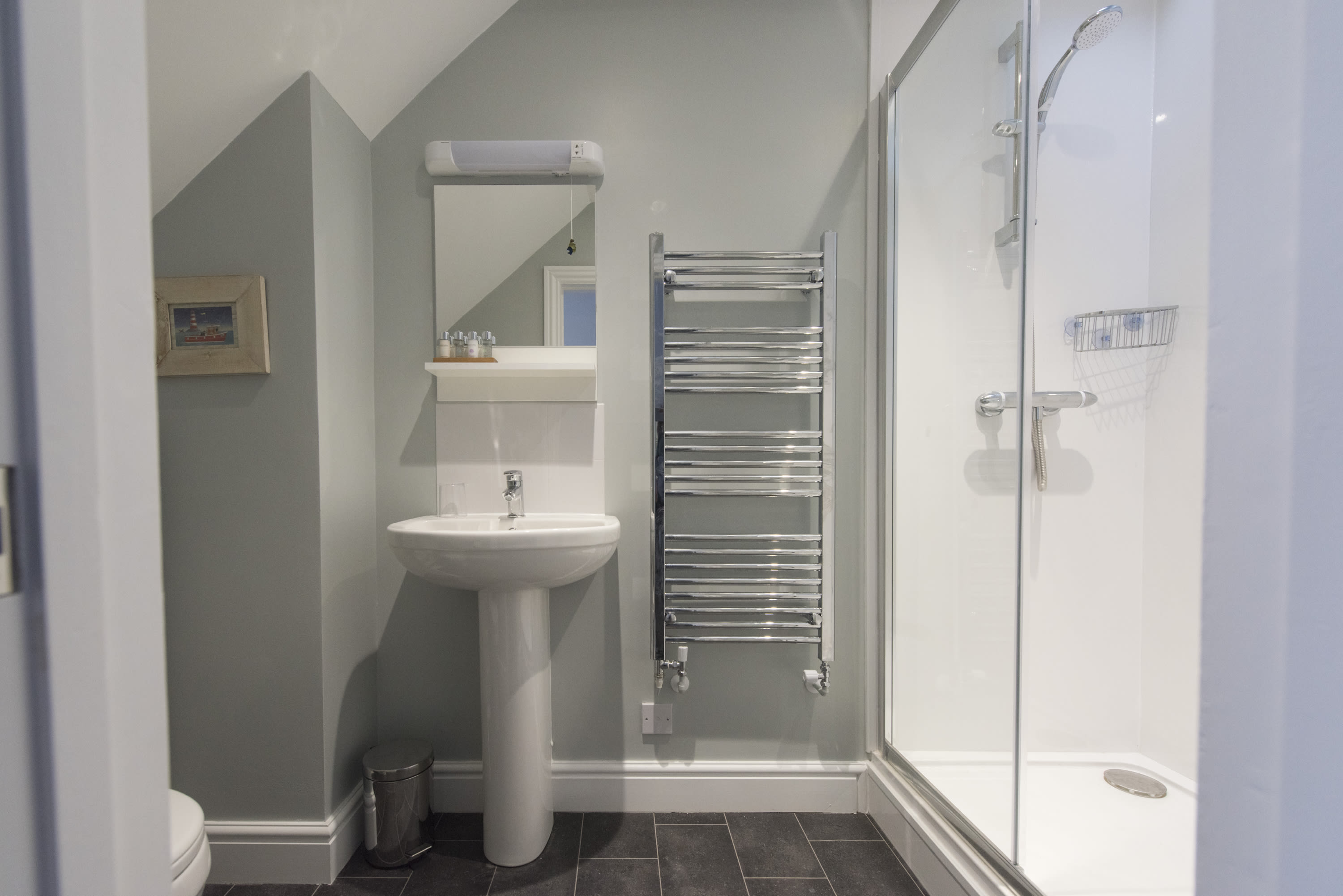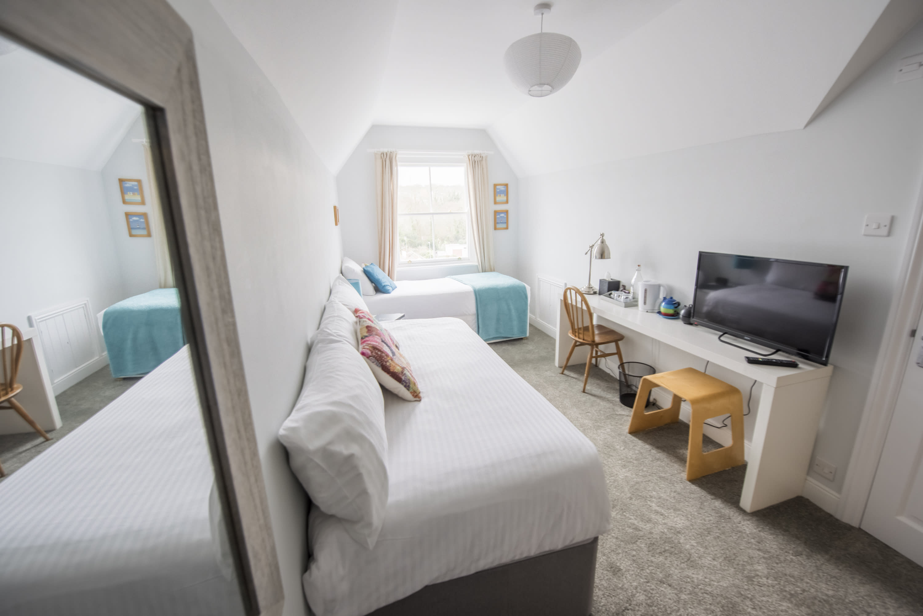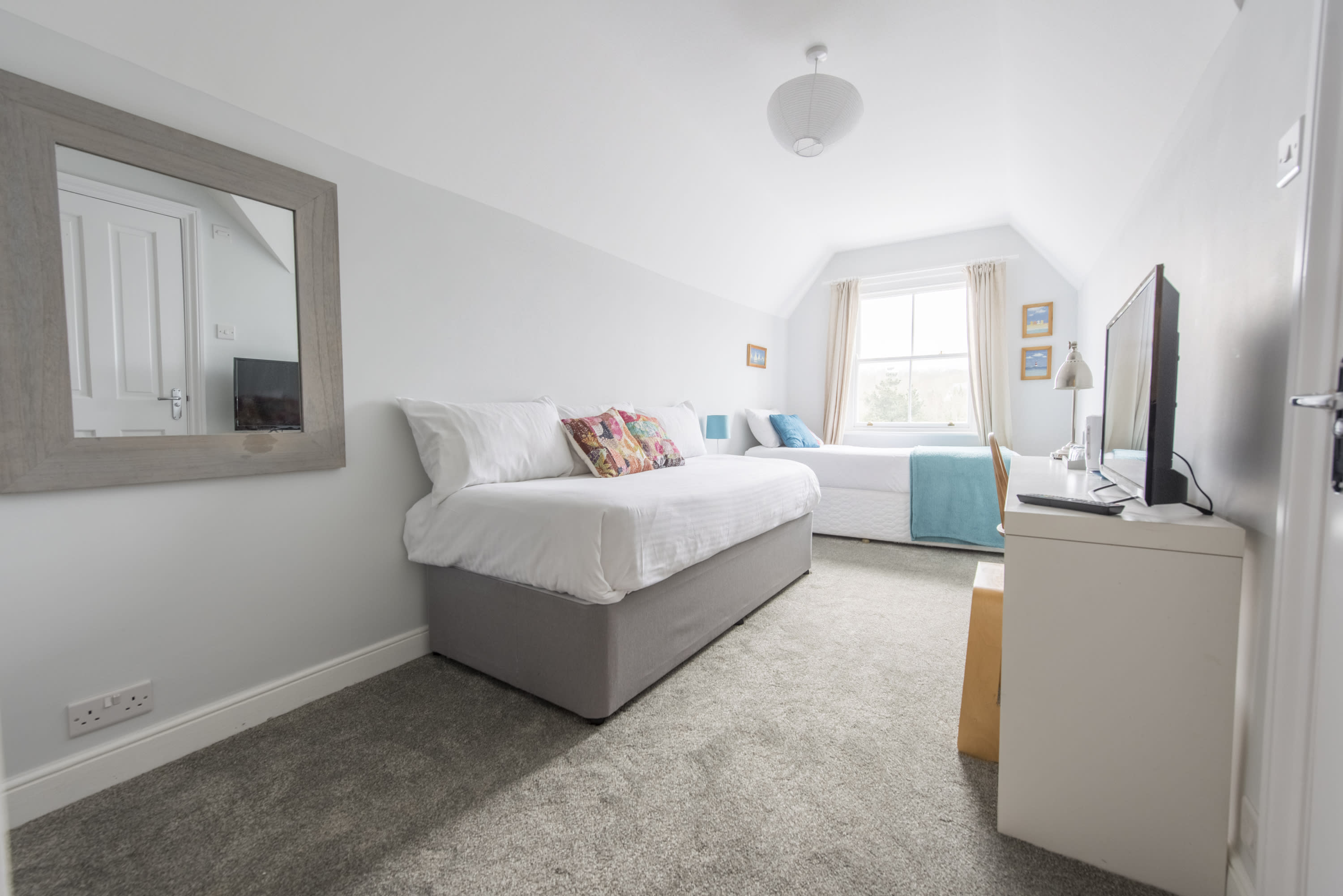 Our smaller Double room is situated on the second floor at the side of the house overlooking the garden and a glimpse down to the sea. This room is ideal for a couple with children who can take the next door twin room (see Bedroom 6). It comes complete with flat screen TV, guest amenities tray, alarm clock, hair dryer and fitted wardrobe. The modern on suite bathroom offers a powerful shower, heated towel rail and a selection of skincare toiletries.Room Facilities: